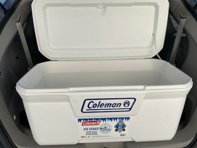 [This review was collected as part of a promotion.] The Coleman brand is a name I trust for quality coolers. This large 120qt cooler is no exception! It boasts sturdy handles with thick insulated walls and lid. It fits perfectly in the back of my Hyundai SUV. It is perfect for road trips, vacations, and sporting events! Keeps drinks cold and maintains ice as well! I do wish this particular cooler had wheels to enhance the portability, but the handles do work well - as long as you have someone to help you lift it!