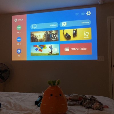 The projector offers impressive picture quality and ease of use, making it a great choice for movie nights and gaming. Guests appreciate its strong projection capabilities, especially in dark environments, and the auto keystone adjustment feature simplifies setup. While some guests experienced connectivity issues with certain streaming services, many found it to be a reliable and affordable option for home entertainment. Overall, it provides a solid value for those seeking a budget-friendly projector.