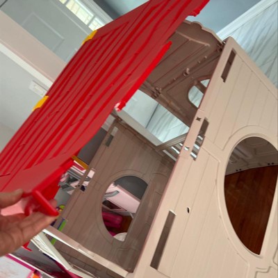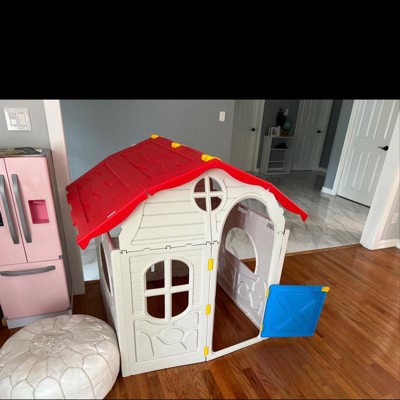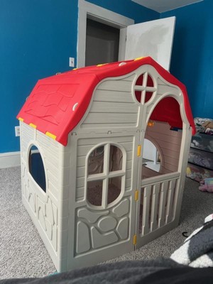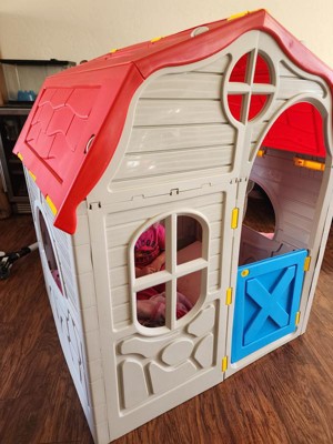 [This review was collected as part of a promotion.] We are blown away by the study and great quality of this fun house! The plastic it is made out of is environmentally friendly, that was a big plus for us. The details are on point and adorable. The cottage was super easy to put together and has delivered hours of fun. Definitively encourages creativity, imagination and role playing. It was a delight to see the joy in the kids faces once it was ready to play with. It folds down easily too so you can take it with your to grandma's or with you on vacation.