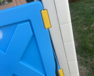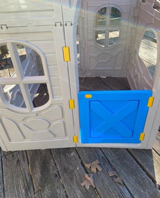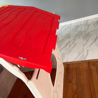 [This review was collected as part of a promotion.] This playhouse is a good size and quick and easy to set up. It has very good detailing on each panel so that's a plus. I can literally unclip the roof clips and fold this up in less than a minute. Overall my kids love it. It is light weight and blew over when it was windy outside so now we keep it inside.