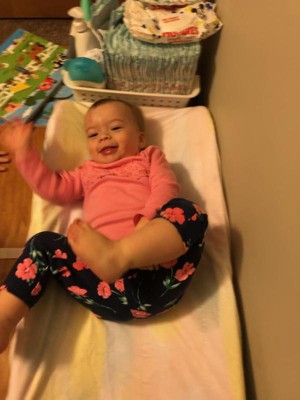 I love the look of this changing pad. It is also so soft and keeps our little one warmer in the cold months. Only downfall is with the fabric if it does get dirty you have to wash it. Would highly recommend but would also recommend having a back up in case of a mess.