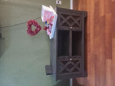 This is the perfect entertainment center for a small living room. I did not put the TV on it as it hangs from the wall.