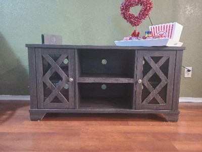 The Gateway TV Stand with Storage Cabinets and Shelves by Breighton Home combines modern and transitional style, making it the perfect entertainment center for your living room. Built to support TVs up to 55 inches, this media console offers a sleek design that seamlessly complements any decor. Constructed from durable manufactured wood with a beautiful smooth finish, it features two open shelves and four enclosed cabinets, providing ample storage for gaming consoles, media players, and decorative items. The cabinet doors, designed with an elegant double X-shaped overlay and tempered glass windows, close effortlessly with magnetic latches. Cable management holes ensure that your TV center remains organized and clutter-free. Upgrade your home entertainment experience with the stylish and practical Gateway TV Stand with Storage Cabinets and Shelves by Breighton Home.
