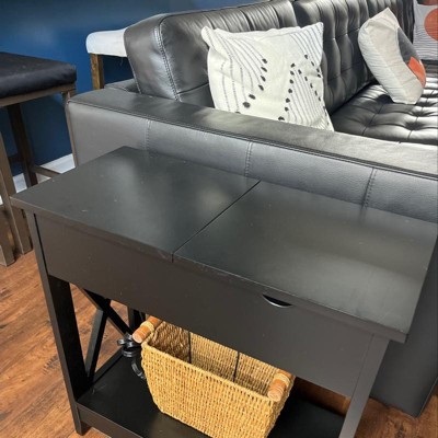 We bought two. One of the first had to be returned due to top two pieces that were hinged were not evenly put together. There was an offset that was too noticeable when closed. Quality of the finish is low. After the first week the top’s finish had lots of small scratches that can be seen when the light hits it right. The scratches were where I had set a corked back coaster. No longer has a clean look. Not noticeable right off but is there. Worry how it’s going to wear over the years. Also of course the black shows all the dust. Must keep wiped consistently. But black was the color we needed. Maybe a better design would be a textured finish that would address the fine scratches and the dust.