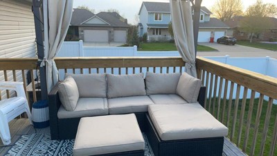 This patio sectional is a great value for the price! The rattan material is sturdy and well-made, and the cushions are really comfortable. I love the ottoman table, which is the perfect height for drinks or snacks. Assembly was easy and the set looks really beautiful on my patio. I highly recommend this set to anyone looking for a great value on outdoor furniture