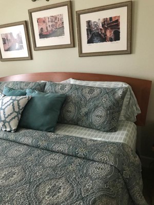 So glad I bought these sheets. They go perfectly with my Turtle Cove set from Tommy Bahama I bought a couple years ago. The top sheet is a bit wide for the comforter and shows on one side, otherwise I’d give these 5 stars.