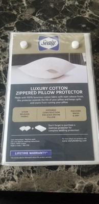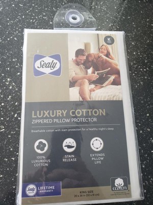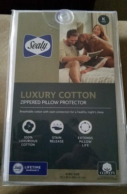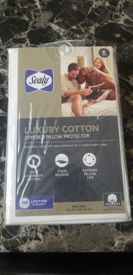 Sealy King Luxury Cotton Pillow Protector: Quilted, Zippered, Stain-Repellent, Machine Washable