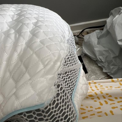 [This review was collected as part of a promotion.] This is my favorite pillow! It does stays cool during the night! The only thing is that the fabric is really slippery and my cover keeps falling off! But the pillow is really nice ! It’s the most comfortable pillow ever!