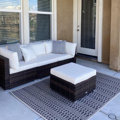 I love sitting outside and reading on this furniture set. The cushions and pillows are comfortable, and the wicker design is stylish. It's the perfect addition to my backyard.