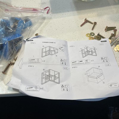 As previous review… screws are not long enough so I had to use construction clamps to hold pieces tight together for the screws to grab. But for the price it is a nice set. Considering buying a second set to make an extra long couch and love seat for back porch