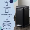 - Hands-free step pedal with a built-in damper to gently lower the lid