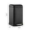 Our sleek black trash can combines quality construction with mid-century modern styling for a small kitchen, bathroom, bedroom, or office. The dark finish makes a wonderful accent, and the tall shape fits easily into a small space. Dispose of trash hands-free with the convenient step pedal. Steel pedal ensures durability, so the open feature lasts for years to come
