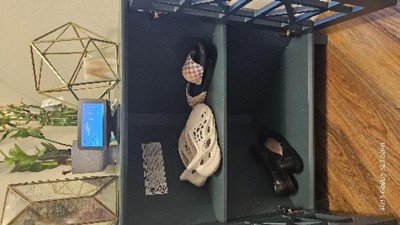 The cabinet came well packaged from FedEx. All of the pieces were well labeled and the unit itself was fairly easy to put together for my eleven year old and I. I suppose it took roughly an hour while we took breaks to watch football! It's not super tall (but it isn't a deal breaker for me). It fits perfectly in the corner and meets the needs I intended to use it for (shoes). I wasn't too thrilled about the color at first. It's a little more on the gray side but it's grown on me. Definitely not turquoise like I expected! I also wish it had a glass or some type of covering to hide what's inside but again, it's fine for what I needed. The furniture is solid and seems like it will last a long time. The doors are also quiet closing so I don't have to worry about my kids slamming them (hopefully).