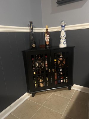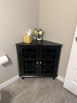 2 Door Corner Accent Cabinet with Fretwork Doors Black - Saracina Home: Transitional Style, Painted MDF, Adjustable Shelf