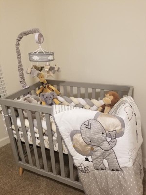 Lambs & Ivy Jungle Safari Elephant 3-Piece Mini Crib Bedding Set - Gray/White