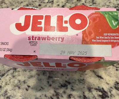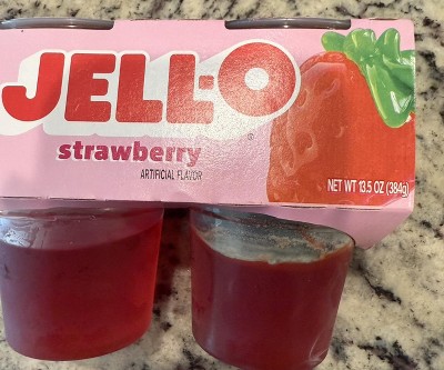 - Jell-O ready-to-eat strawberry artificially flavored gelatin cups are a delicious on-the-go snack