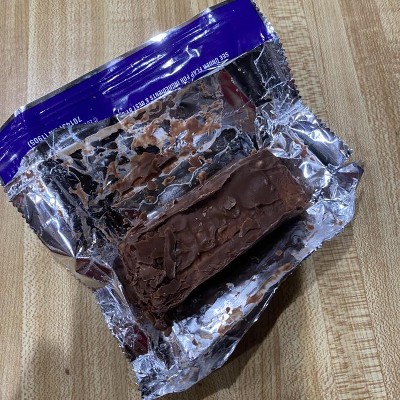 This arrived separately from the rest of my order. When I opened the package to try one all of the chocolate coating was melted to the wrapper. I don’t know if it sat somewhere in the sun or was in heat extended time to cause that to happen but I have never picked up from store myself and that happen.