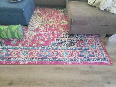 Beautiful- for the price for the 8x10 compared to other retailers it cannot be beat. It is soft on barefeet. The colors are vibrant but not tacky. It leans towards pink/fuschia, not really red. My husband and I put luxury vinyl plank down and so this is a great way to warm up the room. Shipping was also very fast -we got lucky!!