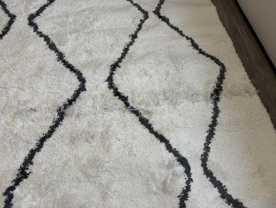 Opened Rug and pile has a row all the way across that is completely undone.