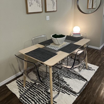 This rug is perfect for my needs - looks great and cleans easily. My dog and cat both love laying on it, so cleaning ease is crucial. A great rug!