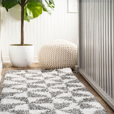 - Inspired by vintage Beni Ourain rugs, our soft and fluffy shag yarns make it easy to go barefoot. Our classic Moroccan pattern has a deep gray diamond trellis on a field of ivory. Anchor your Bohemian space; add softness to a bedroom, living room, or cozy reading nook; this fluffy shag rug has timeless style.
