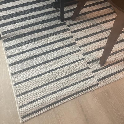 JONATHAN Y Sukie Modern Offset Stripe Ivory/Blue 3 ft. x 5 ft. Indoor/Outdoor Area Rug, Non-Shedding, Easy-Clean