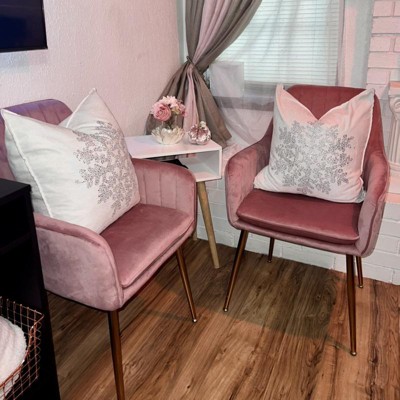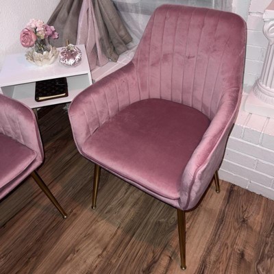 Chairs are perfect! Shiny gold legs, nice pink chair, sturdy, easy to assemble.