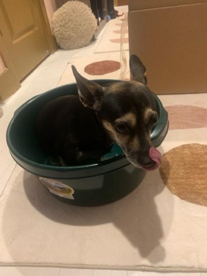[This review was collected as part of a promotion.] Let me tell you this is one sturdy tub! It’s a pretty good size and holds some good stuff. It is very functional! It’s so versatile too, it holds one medium size dog as per my photo demonstrates