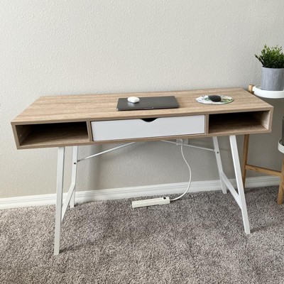 The perfect desk for a small at home work space! The two cubbies and drawer provide the perfect amount of storage to keep everything you need within reach. Assembly was pretty simple, but time consuming. Definitely give yourself enough time and space to set this up!