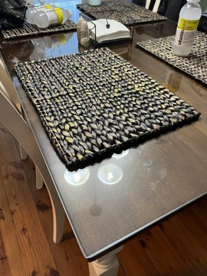 [This review was collected as part of a promotion.] I really liked the sturdiness of these place mats and how easy they are to clean. Thick enough to protect my table while still giving a nice look to my table and dishes. I think the look of the Hyacinth weave is so versatile that these could be used indoors and outdoors which is a big Pro for me! The only thing I would say was a Con was the gold coloring brushed on took over more of the placemat coloring than the black did which made it look more of a shiny golden placemat. Other than that, these placemats are really nice quality.