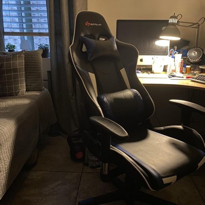 Comfortable sitting experience will account for better gaming condition. And this ergonomic gaming chair makes it. It is designed with an adjustable backrest so that you can sit or lay there in a perfect Angle to relax your body. Height adjustable seat is capable of meeting the requirement of different people. Headrest and massage lumbar cushion reduce discomfort in neck and lower back to relax your body. Other features include 360 degree swivel design, adjustable armrest, smooth rolling wheels, which combines greater comfort and convenience. The five-claw base can disperse pressure imposed on the chair to keep it more stable. Soft sponge and faux leather upholstery will never let you down. In addition, depending on the need of each user, the gaming chair can be used as an office chair as well.