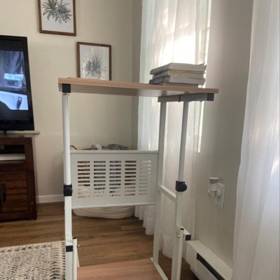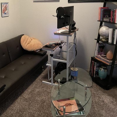 Bought this for my classroom as I did not want to be sitting at my desk all day (not allowed to move around per district cov19 guidelines). It is very sturdy and fairly easy to assemble. My only complaint is that I wish it was a little taller. I am 5'4 and thought it could use another inch of 2. Plenty of my co-workers have asked where I got it from and were interested in buying their own.