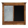 Organize your home in a charming farmhouse style with this wood and metal wall organizer. The rustic Idamae Wood Framed Chalkboard Wall Organizer introduces a wood frame with a distressed shiplap finish. When paired with the galvanized metal of the wall pockets, this beautiful traditional decor piece will bring country rustic design into your home. The wood-framed chalkboard writing surface measures 11 inches wide by 17.5 inches high, great for writing memos, grocery lists, or silly drawings. The two galvanized metal pockets each have an inner capacity of 9.5 inches wide by 5 inches deep with a 1.75-inch opening. The overall outer dimensions of this wall-mounted organizer are 28 inches across by 25 inches high by 3.5 inches deep. Two metal triangle hangers are attached to the back for easy and secure wall display. This organizer arrives completely assembled and ready to use. Hang this organizer in your entryway, kitchen, or home office for organization in a beautiful rustic farmhouse style.