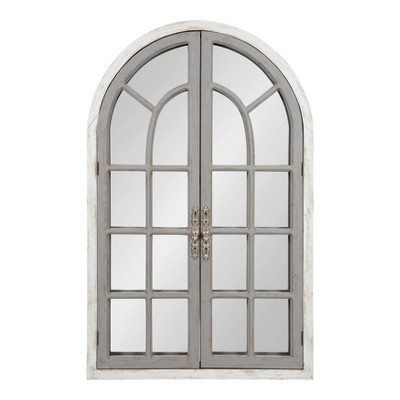 13" x 30" Bakersfiel Windowpane Wall Mirror Gray - Kate & Laurel All Things Decor