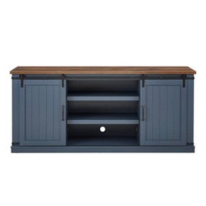 Classic Style 68 in. wide TV stand features a coast-to-coast sliding barn-door design with one full-sized cabinet with left and right partitions. Each partition features up to 3 height-adjustable open shelves. The cable management cutouts will keep your audio and video cables clean and tidy. Its ranch rustic style would perfectly match your current decor. Elevate your living room as well as your TV set with this bald TV stand.