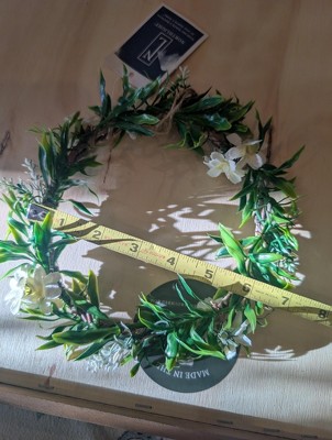Size not accurate. says it's 9 in. it's about 6 and 1/2. 😕 It's cute but won't work for what I purchased it for. also shipped in a plain envelope with no padding and three of the flowers fell off. again, it's really cute. just not worth the price.
