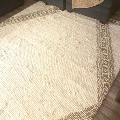 Beautiful wool rug. Detail is a lighter brown than pictured. Great neutral colors that will blend nicely with other shades. So far no issues with shedding.
