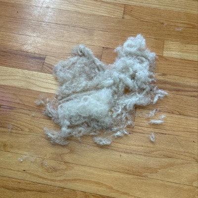 I love the feel and look of this rug… I really want to LOVE this rug but the constant shedding is preventing that. If I can’t find a solution fast I will need to get rid of it… I’m walking around like I have a cat with fibers all over my clothes and hair. The photos are of after the trying to rubber sweep some of he fibers off.