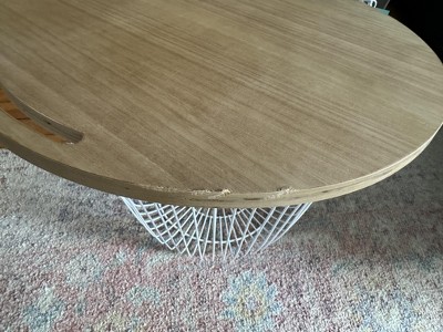 I really like the design. Its perfect for my living room and I love the shelf top it has. It acts as a side table. The basket is sturdy and great quality, however the metal bars can still bend pretty easily. My basket arrived with some bars already bent!