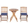 Costway 3PCS Patio Folding Wooden Bistro Set Cushioned Chair Conversation Navy Blue Cushion