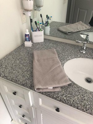 The grey hand towels are soft and somewhat absorbent. They are great for drying your hands, but not as effective when wiping up water off the counter. One thing that shocked me about the towels is that they are supposed to be line dried instead of using a dryer; however, I put mine in the dryer and they did just fine. The color is more of a beige-grey shade, and the texture on the towels provides some flair. They are also larger than most of my hand towels.