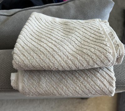 This is a set of nice towels! I am really liking these hand towels as they are quite soft and absorbent. They are thick and I feel like the diagonal design gives them a nicer look. They have a nice natural color that will go with any decor.