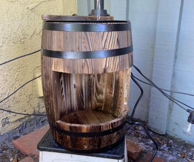 Outsunny 23" H Outdoor Water Fountain Wood and Plastic Rustic Apple Barrel Pump Garden Decor for Outside Backyard