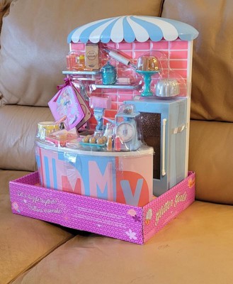 [This review was collected as part of a promotion.] First off, my daughter LOVES the glitter girl dolls, they are a perfect size for her… the attention to detail this company puts in, is amazing. All the little pieces make it so fun. My daughter set it all up and played for hours as if she was recording a baking show… I wish they had this when i was a kid!