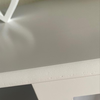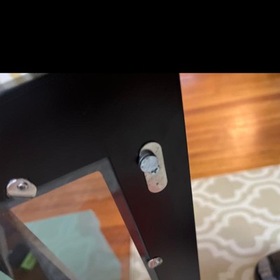 While the media console looks lovely, putting it together exposed a lack of care in manufacturing. While installing the cabinet hardware the paint chipped in 4 different places. Thankfully the chipped paint is on the undersides of shelves. installing the back the three panels, I found that the holes were not driilled deeply enough, making assembly very difficult.