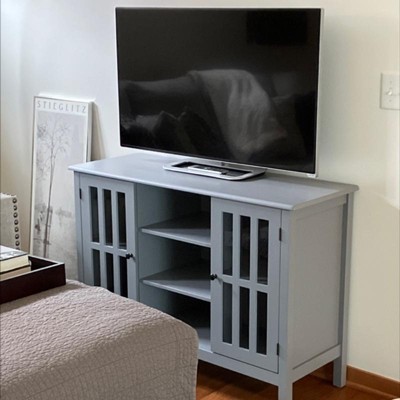 This TV stand is just perfect for our modest sized 42” TV. Fairly intuitive to put together, sturdy when assembled, and well worth the promotional price. I added glider feet to the legs to protect our hard wood floors, but that was an individual choice. We would recommend this piece as highly functional utilitarian furniture.