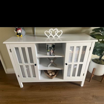 • Modern TV Stand: Designed with exquisite metal knob and transparent tempered glass windows, this simple entertainment center will make a timeless addition to your home decor. No matter if you place it in the bedroom, living room or entryway, it will match your furniture perfectly.