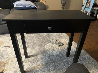 This affordable little table was perfect for my (cats) needs. I am currently using it for my cat's "feeding station". It fits just right in a little corner off the kitchen. Their bowls fit under the table, and the top has plenty of room for their food, bowls, serving spoons, and snacks etc... Plus the little drawer for kitty odds n ends.
