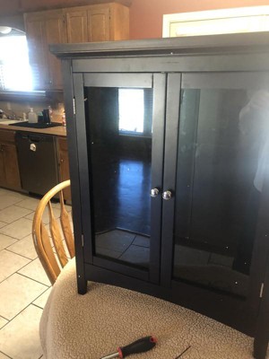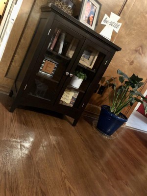 [This review was collected as part of a promotion.] The Teamson Home Madison Wooden Floor Cabinet in Espresso is a beautiful piece of furniture. The chrome knobs accent the dark wood so nicely. This matched perfectly in my living room and really looks sleek and nice. This was easy to assemble with clear, concise directions. This feels very sturdy, and well made. I love the glass windows in this and feel they really add a nice detail. Highly recommend this well made cabinet for a cute accent piece in any room.