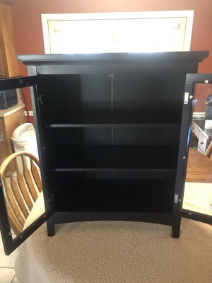 [This review was collected as part of a promotion.] This floor cabinet is absolutely beautiful. The dark wood finish perfectly compliments any and all home decor. The double doors open easily and allow plenty of storage. It was very easy to put together, and is incredibly well made. We put this cabinet in our bathroom to hold extra towels and hygiene items. It's absolutely perfect